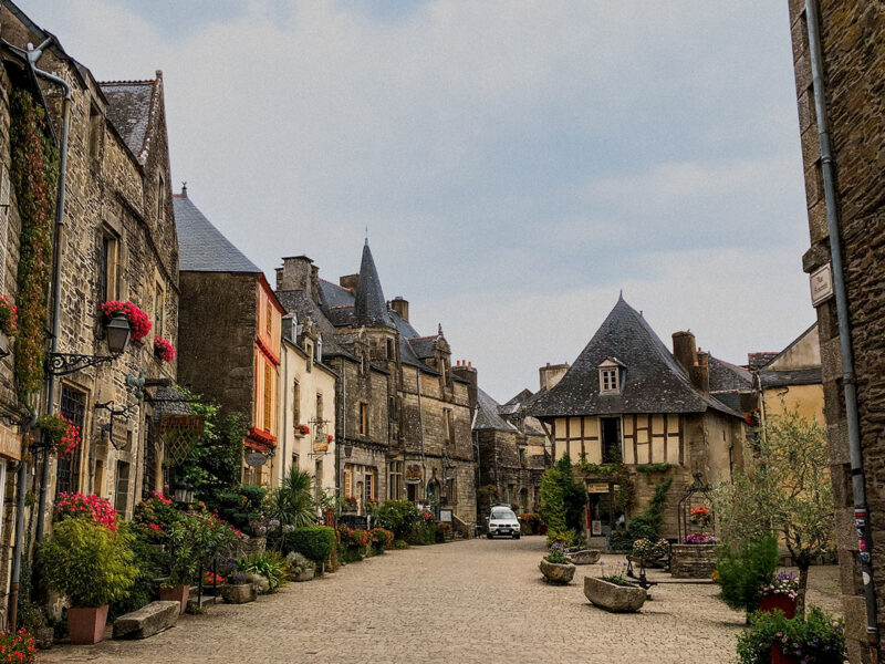 Mon voyage en terres bretonnes se poursuit au petit matin avec la découverte d’un village où la pierre règne en maître, me captivant totalement. Malgré une apparente homogénéité, la cité se révèle être un témoin exceptionnel des différents courants architecturaux qui ont marqué son histoire au fil des siècles : maisons à pans de bois, édifices gothiques, demeures de style Renaissance, hôtels classiques, architecture du XIXe siècle… À Rochefort-en-Terre, la pierre est indubitablement le fil conducteur entre ces différentes époques. S’ajoutent à ce patrimoine remarquable des places baignées de soleil, des jardinières débordantes de fleurs et des balcons ornés, créant une carte postale d’une beauté magistrale. J’ai eu le privilège de déambuler dans des ruelles désertes à l’heure du café matinal. L’ambiance paisible qui règne à ce moment de la journée, empreinte d’une douceur propre aux petites cités, m’enveloppe et me transporte dans une parenthèse hors du temps. Les ruelles pavées et les façades richement décorées m’invitent à une véritable balade dans le temps, où chaque coin de rue révèle un détail architectural, une porte ancienne, une fenêtre finement ouvragée. Les édifices en pierre blonde semblent presque lumineux sous la douceur du soleil matinal, et les rares habitants que je croise me gratifient d’un sourire bienveillant, témoignant de la quiétude qui habite ce lieu. Rochefort-en-Terre est de ces lieux qui vous marquent durablement, une invitation à une parenthèse hors du temps. Je quitte le village le cœur empli de la magie de ce joyau de la Bretagne.