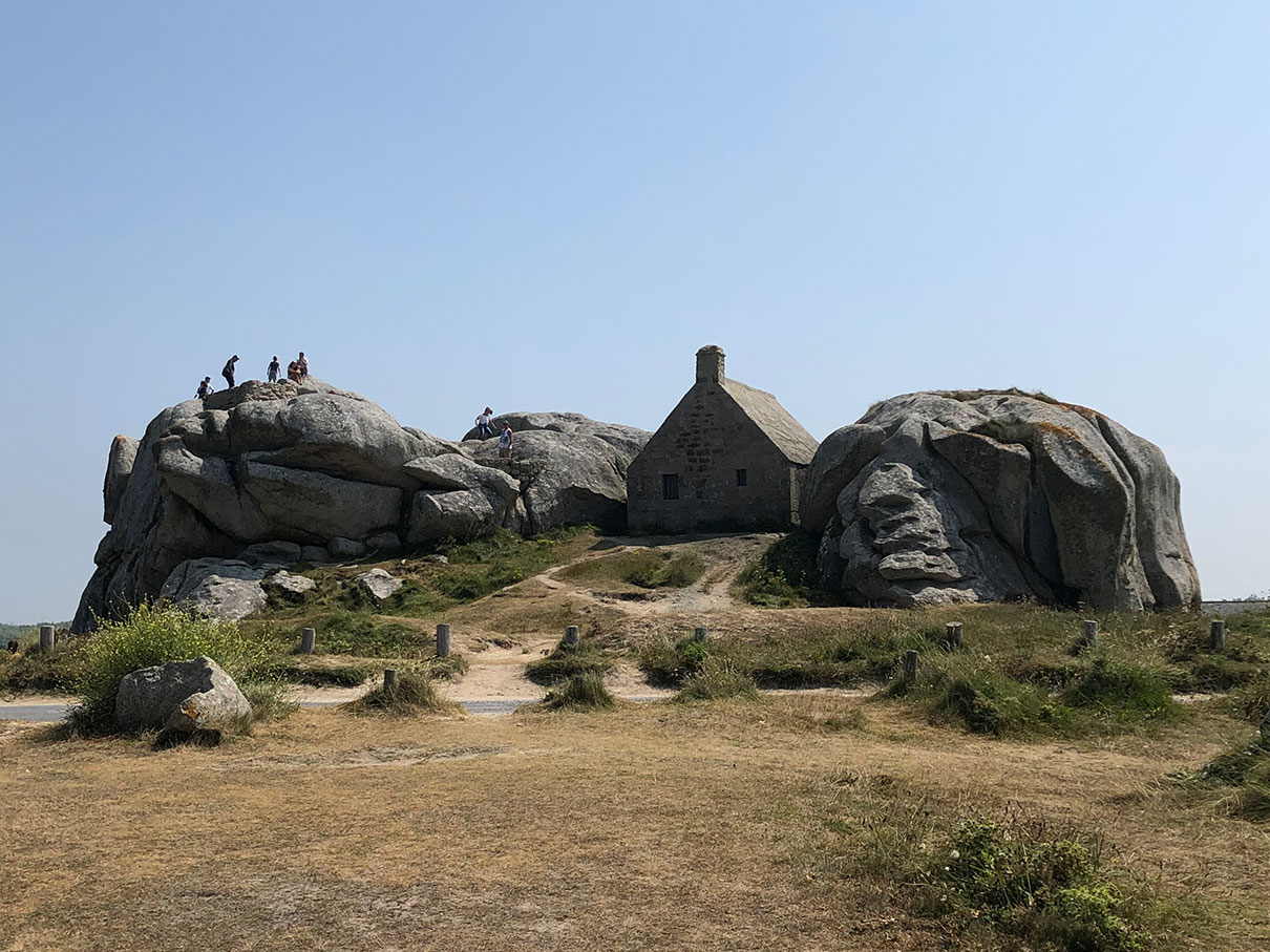 C’est sur les conseils avisés de mes abonnés bretons sur Instagram que j’ai glissé le hameau de Meneham, niché dans la commune de Kerlouan, dans le nord Finistère, dans mon itinéraire. Et quelle heureuse idée ! Cette perle mérite assurément le détour ! À mon arrivée, un parking bien pratique m’accueille, situé à deux pas de ce petit village de pêcheurs aux toits de chaume et d’ardoise. J’entame ensuite mon exploration à travers de petits sentiers, passant devant un gîte en activité, un bistrot toujours prêt à réjouir les visiteurs, et de charmantes petites maisons en pierre. Érigé pour surveiller la côte, le corps de garde, premier édifice du hameau de Meneham, capte immédiatement mon regard. Niché entre deux imposants rochers, il dégage une atmosphère véritablement singulière. Le monument, minutieusement restauré, fait le bonheur des photographes et des visiteurs. Puis, tournant mon regard vers la mer, je suis tout simplement ébloui ! Une petite plage abrite des rochers aux formes étonnantes, et surtout, une eau d’une clarté cristalline, aux nuances de bleu digne des Caraïbes ! Et pourtant, je suis bel et bien en Bretagne ! La carte postale qui se dessine devant moi est tout simplement incroyable, le décor d’une beauté saisissante, et la nature y déploie une splendeur insolente. Je n’aurais jamais imaginé que la mer puisse revêtir une telle grâce sur cette portion du territoire. Certes, elle est fraîche, mais d’une beauté à couper le souffle ! Me voilà définitivement face à l’un des plus beaux endroits de ma chère France, et sans doute l’un de mes coups de cœur de ce road trip. Cela en dit long sur l’exceptionnalité de cette adresse ! Gardons cependant cette pépite bien précieusement, à l’abri des foules trop nombreuses.